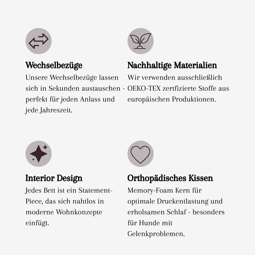 Zeitlose Eleganz für stilvolle Wohnräume. Unsere exklusiven Wechselbezüge verleihen jedem Hundebett einen...